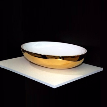 Ovala tvättställ med placering på bänkskiva kan fås i många olika material