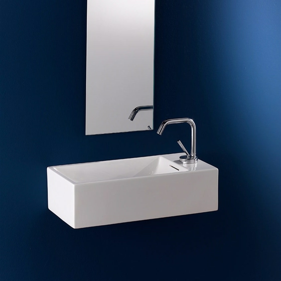 Firkanted tvättställ i vackert vitt porslin till väggen