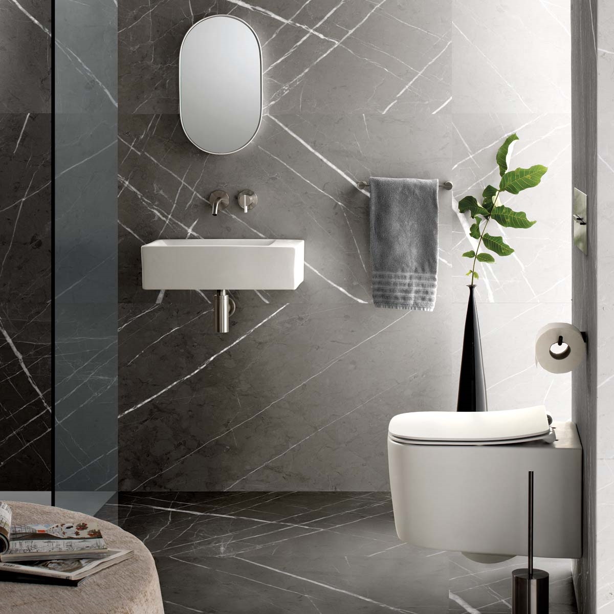 Tvättstället har en vacker båge i botten. Tvättstället har en insida design som ger ett mjukt men minimalistiskt uttryck.