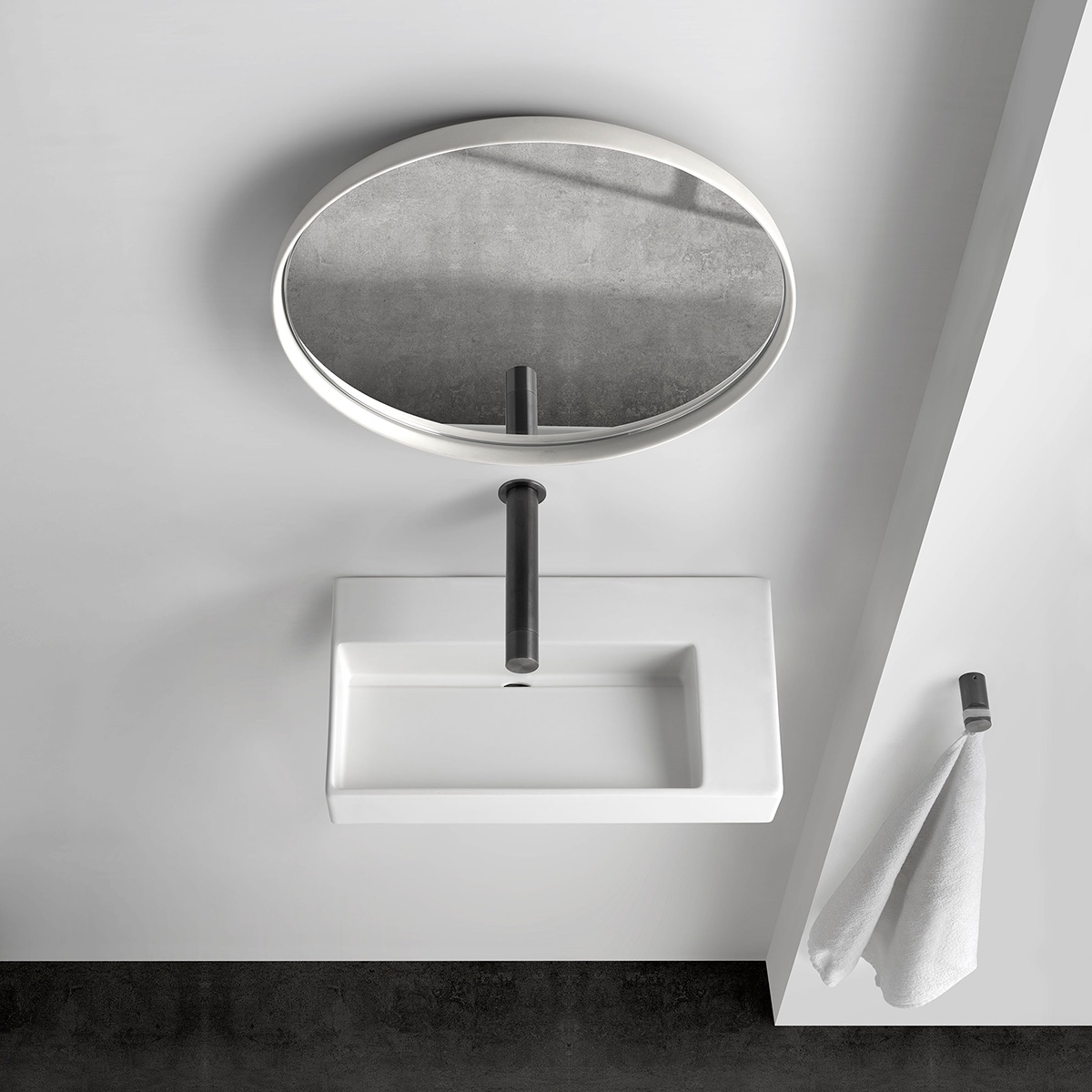 Tvättställett kan hängas på väggen, placeras på en bänkskiva eller badrumsmöbel.