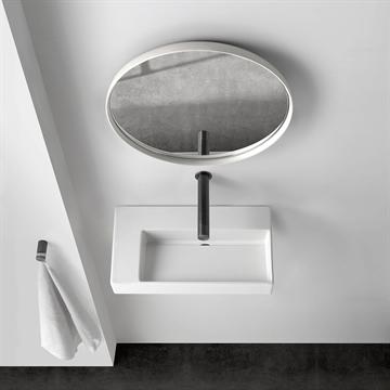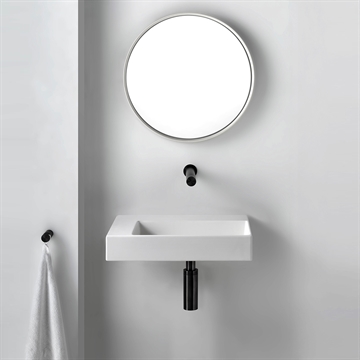 Tvättställett kan hängas på väggen, placeras på en bänkskiva eller badrumsmöbel.